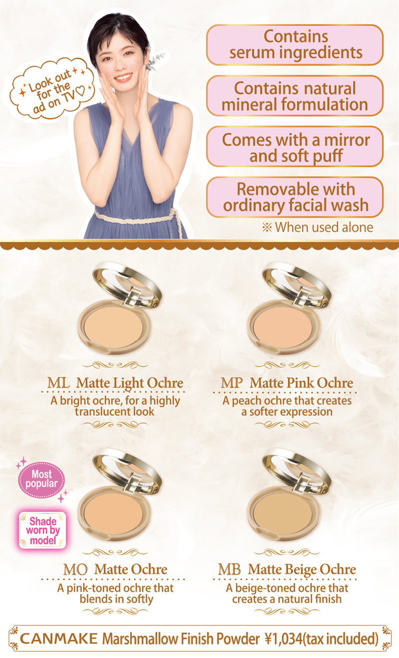CANMAKE Marshmallow Finish Powder mini delivers a refined matte finish with a uniquely soft, marshmallow-like texture that blurs pores and smooths uneven skin tone. Its fine, silky powder is expertly formulated to reduce shine, giving your complexion a natural, fresh look throughout the day. The compact size makes it convenient to carry, allowing for quick touch-ups wherever you are. Enriched with natural mineral ingredients, this powder respects sensitive skin and easily washes off with your usual cleansing routine. Offering strong protection with SPF50 PA+++, it shields your skin from harmful UV rays while maintaining a lightweight feel. This formulation prioritizes skin health while enhancing your appearance.