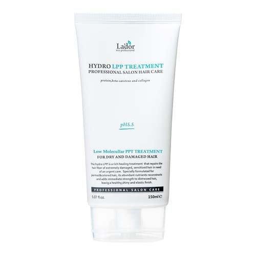 Low Molecular PPT treatment for dry and damaged hair. The Hydro LPP Treatment formulated with Hydrolyzed Collagen supplies moisture and nutrition to damaged hair, which prevents dryness and hair static, and also improves hair elasticity. It is specially formulated to protect chemically treated hair in order to prevent color from fading and to prolong perm effects.